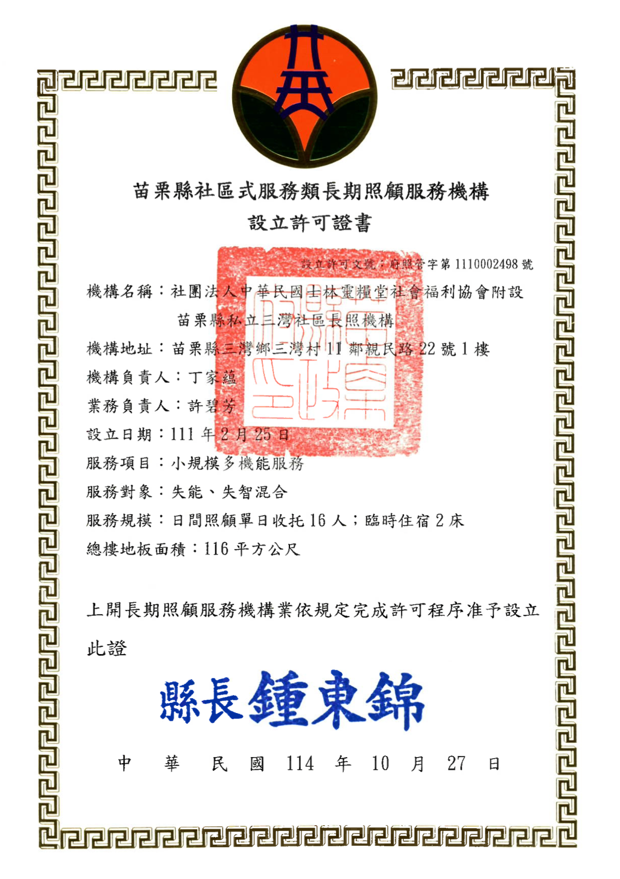 苗栗縣私立文山文聖社區長照機構