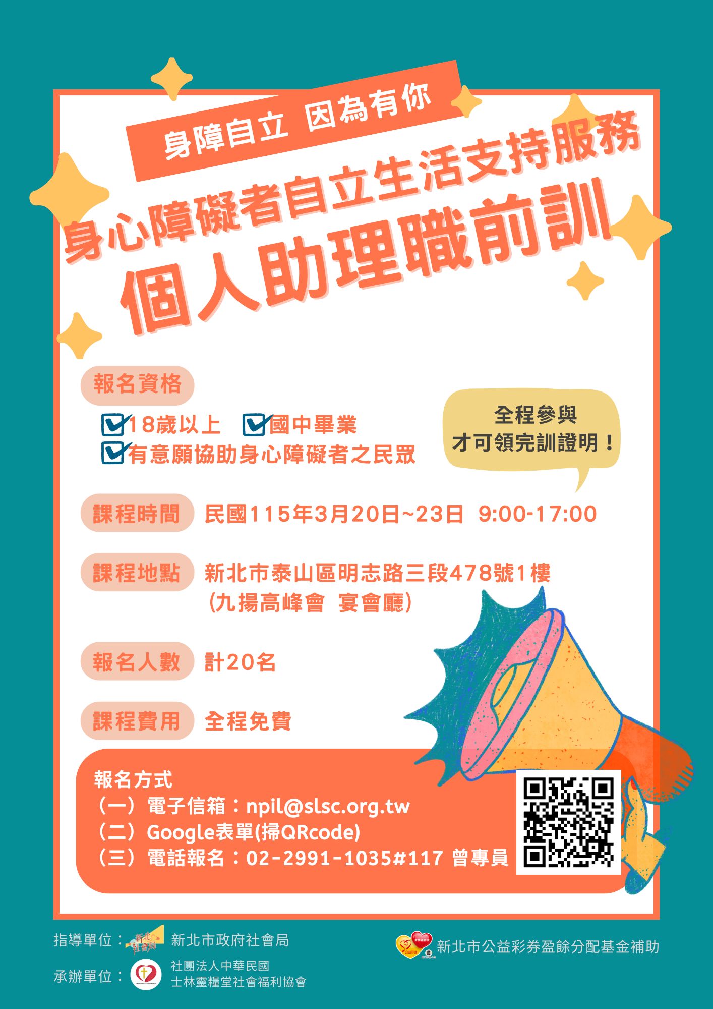 身障自立|115 身心障礙者自立生活支持服務個人助理培訓