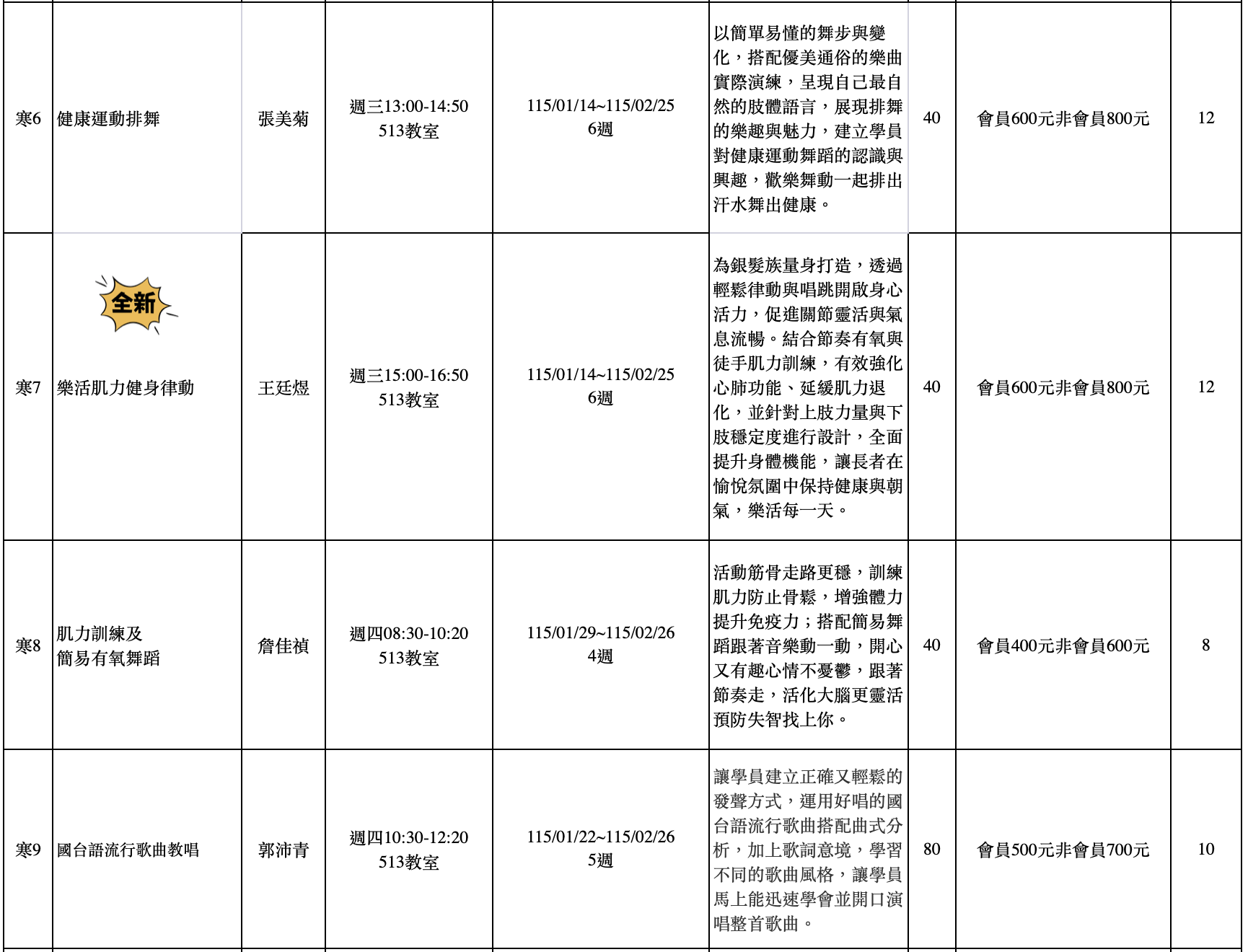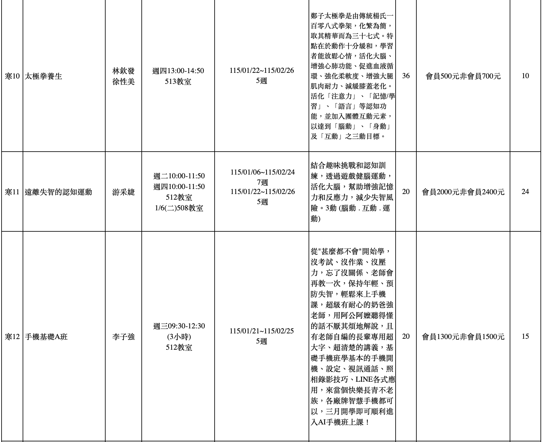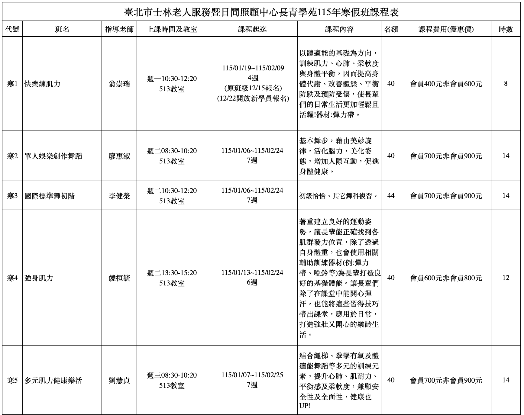 臺北市士林長青學苑-115年寒假班課程表❄️